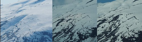 Utviklingen av glidesprekker og til slutt glideskred i Jostedalen i 2016. Foto: Jostein Aasen.