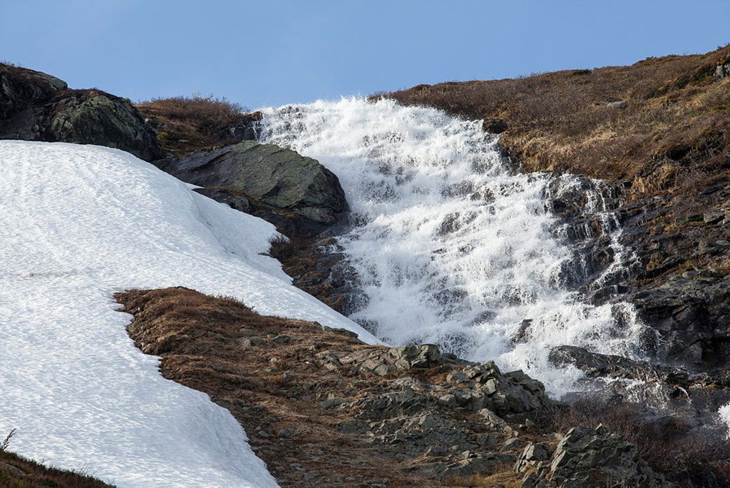 Høye temperaturer gir stor snøsmelting i fjellområdene på Sør- og Østlandet de neste dagene. Vannføringen øker i bekker og elver, spesielt i Drammensvassdraget, men de høye vannføringene vil ikke føre til store skader.