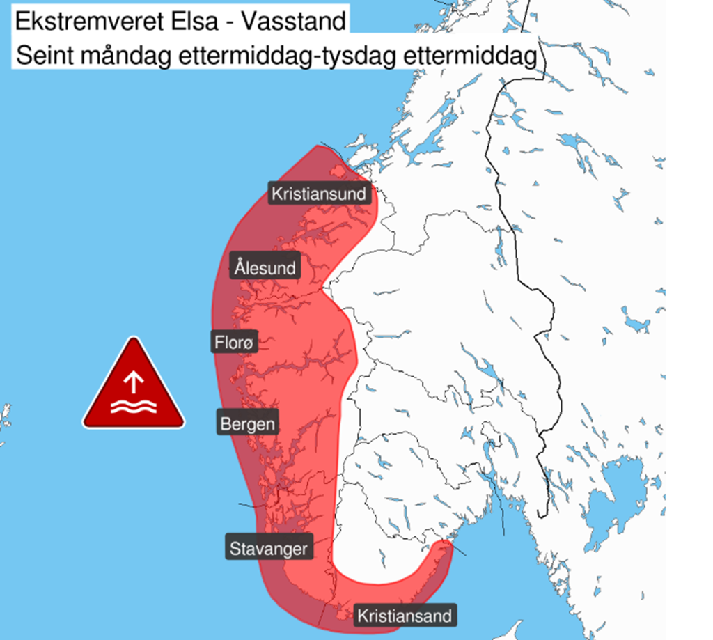 Varsel om «høy vannstand langs kysten og i fjordene» utstedes av Meteorologisk institutt (MET). Ekstremværet Elsa er ventet å føre til ekstremt høy vannstand langs store deler av kysten i Norge. Denne type varsel gjelder sjøvannstand og ikke vannstand i vassdrag og innsjøer.