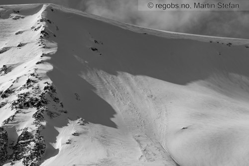 Det er mange steder bygd ut store skavler. Obs obs!! Foto: regobs.no, Martin Stefan
