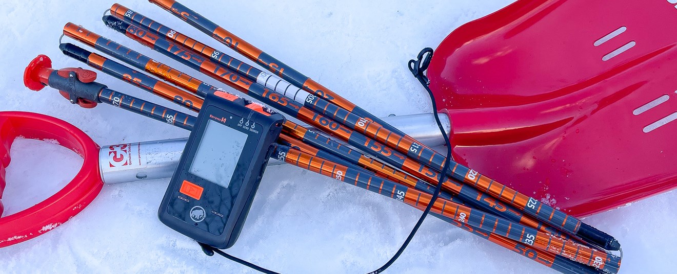 Ved ferdsel i snøskredterreng bør du alltid ha med deg Sender / mottager (S/M) , spade og søkestang. Lær deg å bruke utstyret og øv jevnlig på bruken.